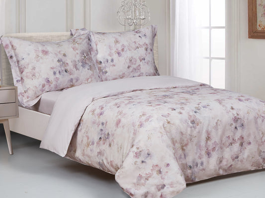 Violet Linen French Orchid Floral Pattern Bedding Duvet Cover Set