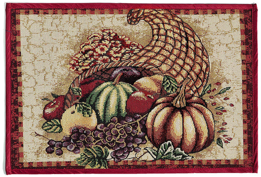 Fall Harvest Thanksgiving Autumn Leaves Sunflowers Fruits Pumpkins Tapestry Pattern Decorative Place Mats