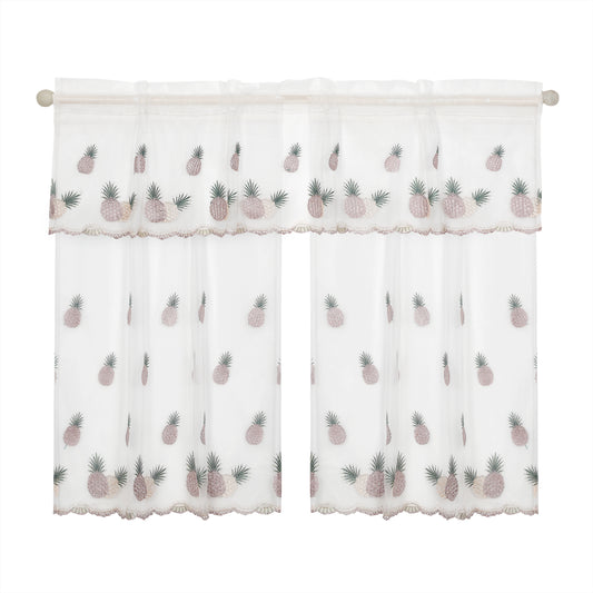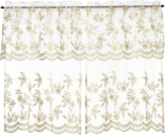 Royalty Decorative Embroidered Sheer Lace Floral Design Decorative Window Treatment Rod Pocket Kitchen Window Curtain Panel Tiers and Swag Valance