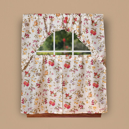 European Pears Flowers Pattern Decorative Window Treatment Rod Pocket Kitchen Window Curtain Panel Tiers and Swag Valance