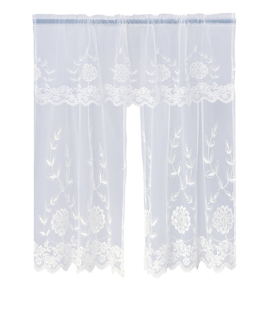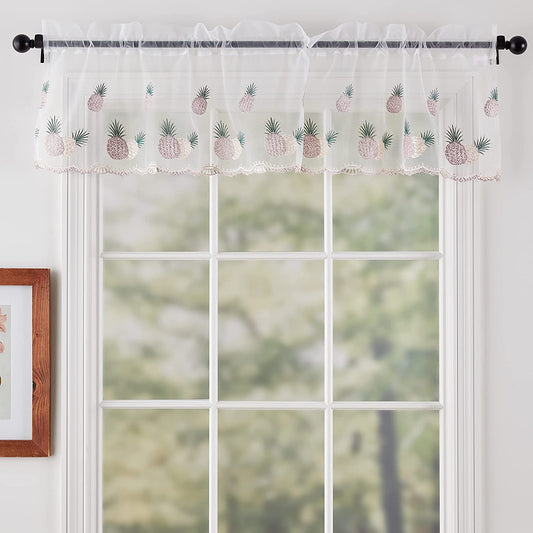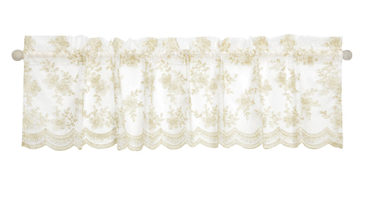 Royalty Decorative Embroidered Sheer Lace Floral Decorative Window Treatment Rod Pocket Curtain Straight Valance