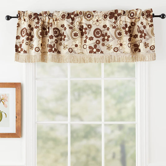 Victoria Chenille Daisy Sunflower Pattern Decorative Window Treatment Rod Pocket Curtain Straight Valance