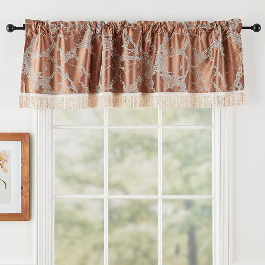 Tivoli Flock Vintage Decorative Window Treatment Rod Pocket Curtain Straight Valance