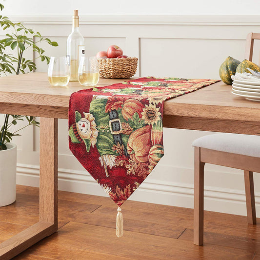 Fall Harvest Thanksgiving Autumn Leaves Sunflowers Fruits Pumpkins Tapestry Pattern Decorative Table Runner